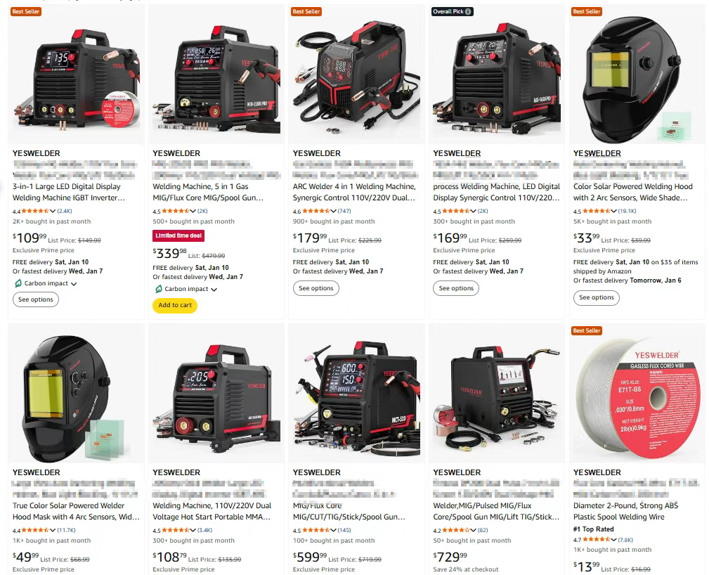 彼时传统工业焊机的定价普遍在4000-6000美元区间,而YesWelder精准锚定100-1000美元的价格带,主打入门级用户与家庭消费群体,凭借高性价比的差异化定位快速抢占市场,积累了一批核心忠实用户。