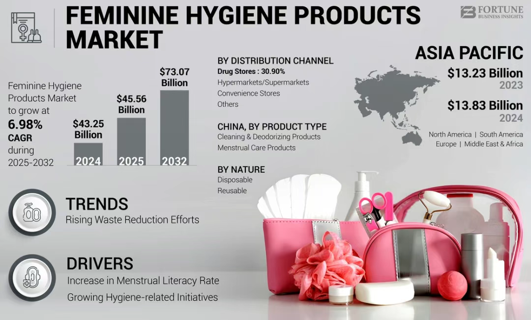 当前,全球女性卫生用品市场规模约为432.5亿美元,并仍以接近7%的年复合增长率持续扩张。按照这一速度,到2032年,市场规模将逼近730亿美元。这并不是一次短周期的爆发,而是一条足够长、足够稳定的增长曲线。