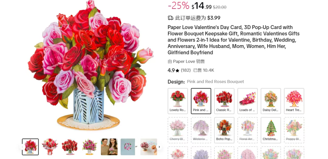 对于欧美国家的人而言,氛围感和浪漫永远都是诚意满满的,特别是对于贺卡热爱的程度远超于其他国家,而这一款可作为情人节礼物的弹出式3D花束贺卡就这个样成为新宠。