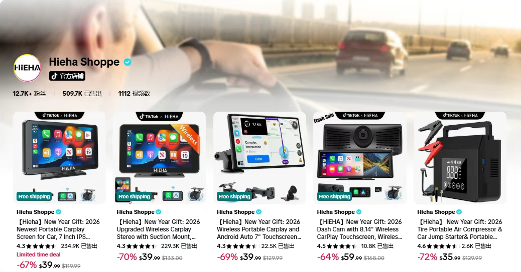 其中,Hieha Carplay车载娱乐屏幕因其实用性和多功能性在TikTok美区迅速走红,是汽车应急启动电源之外的又一爆品。