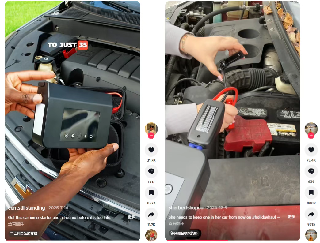 在TikTok美区,汽车应急启动电源、防冻液、挡风玻璃清理刷等产品持续热销,其背后的核心驱动力,正是消费者对于应急自救和行车安全的强烈刚需。