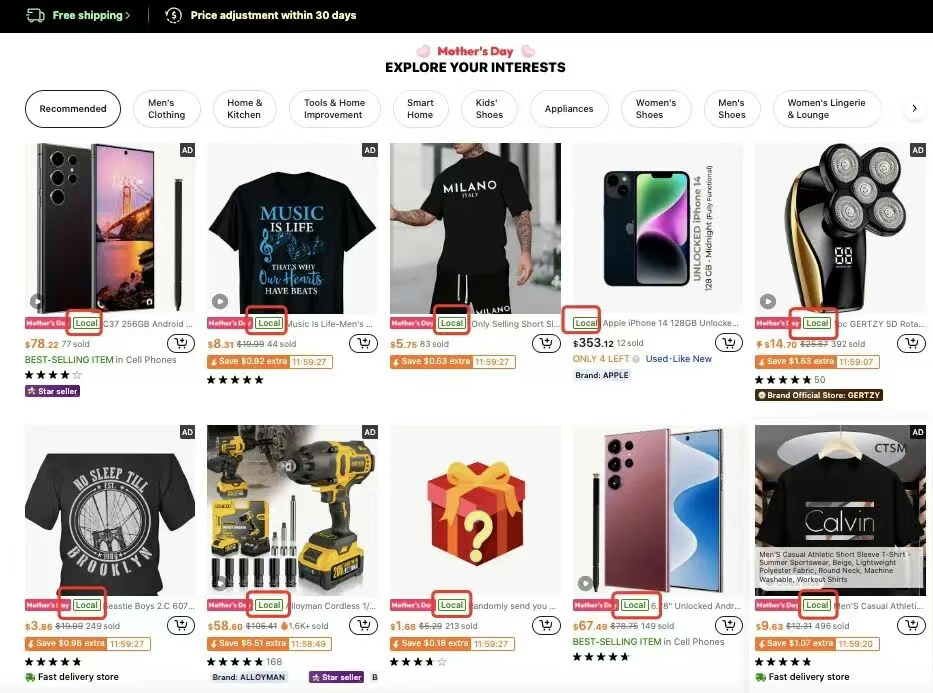 一度,Temu美区前台只展示带有“Local”标签的商品,所有从中国直发的产品被集中下架。