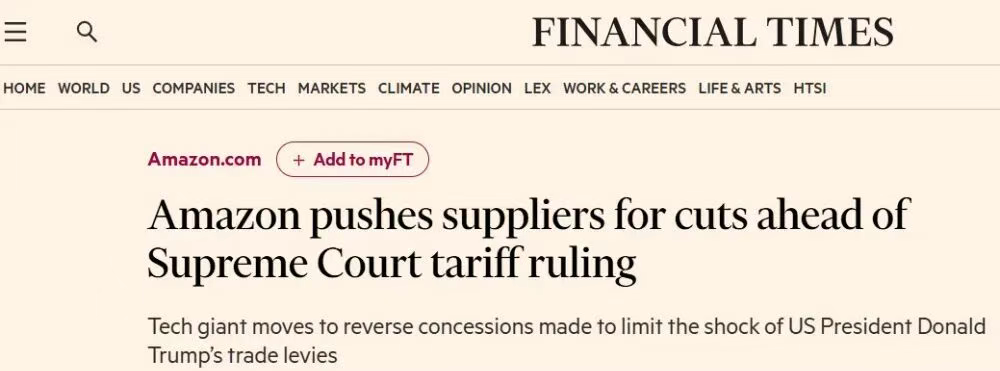 早在2025年4月,亚马逊就已经要求部分中国供应商为应对关税压力进行价格调整。