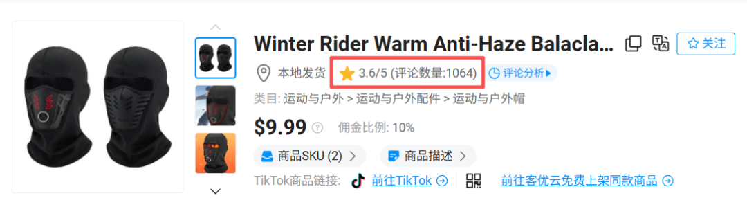 这说明在快速放量的同时,评论区已经开始积累真实的不满反馈。对卖家来说,这是必须盯紧的信号:材质、做工、佩戴舒适度、透气与防风的平衡,很可能已经出现集中吐槽点。