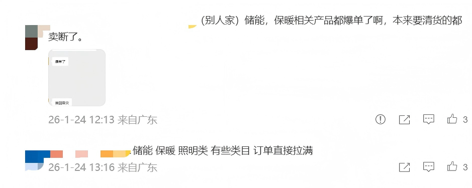 储能设备成了不少家庭的“安全垫”,应急照明、取暖产品则直接关系到最基本的生活体验。这类商品的共同特点是:刚需、不能等、用得上。