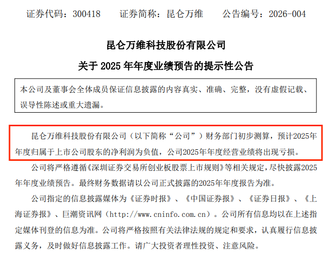 不过,“All in ai”背后,昆仑万维面临着增收不增利的经营挑战。2024年,昆仑万维归母净亏损15.95亿元,是其自2015年上市以来首次亏损;2025年业绩预告也指明归母净利润预计为负值。