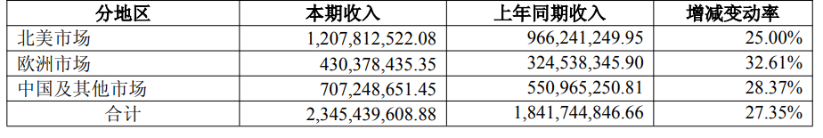 公司已在全球建立了近30个海外区域总部、销售平台和子公司,产品销往全球超过120个国家和地区。海外市场是其绝对基本盘,营收占比高达 98%,其中北美和欧洲长期贡献超过七成收入。