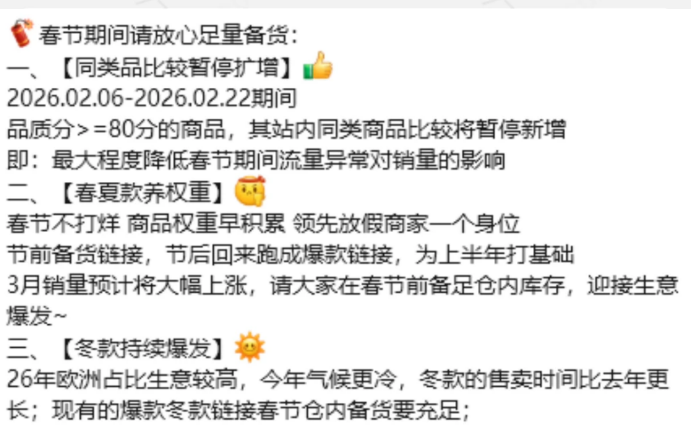 在外部环境日益复杂之际,Temu更需要一个稳定、有韧性的核心卖家群体。春节政策可视为对优质合作伙伴的一次“压力测试”和“关系维系” ,以确保在应对全球性风浪时,供给基本盘不至于溃散。