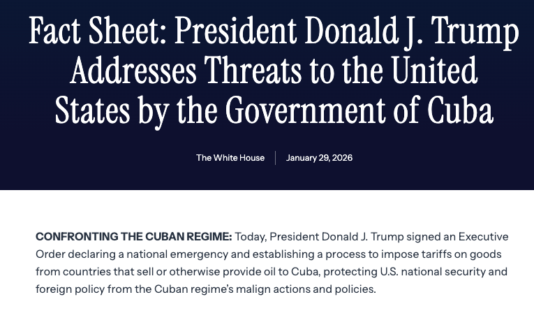特朗普再次向全球发出关税威胁!将对向古巴提供石油的国家输美商品加征从价关税。