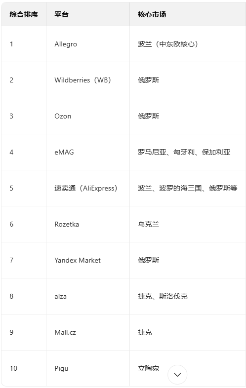 Wildberries、Ozon和Yandex Market,俄系三大平台包揽东欧榜单核心席位。