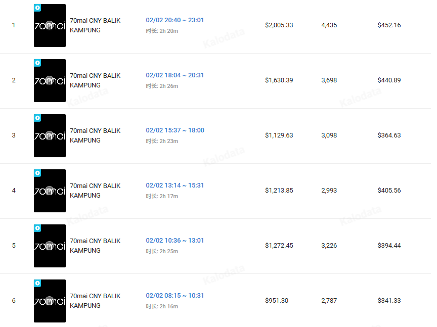 从策略上来看,70mai品牌采取的是全天候高频次直播。虽然单场只有两个小时左右,但覆盖了从早八到晚十一的不同区间,简单来说,就是一直播,总有人看。