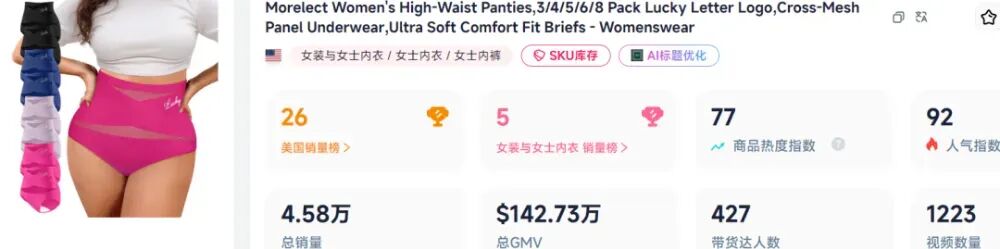 最近,TikTok美区女装与女士内衣榜单,被一条来自汕头的MEIYATNG“大码高腰收腹内裤”悄然改写。