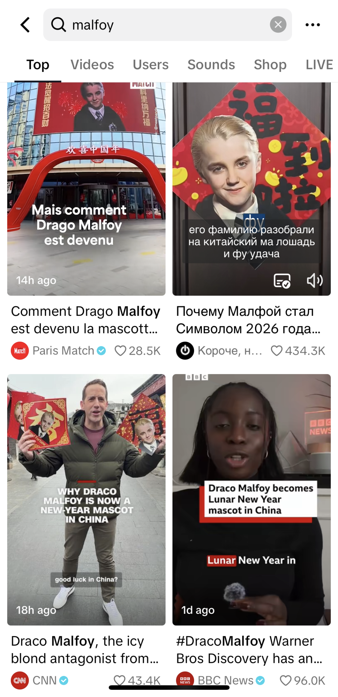 据数据显示,TikTok平台上 #dracomalfoy(德拉科・马尔福)相关话题的累计浏览量高达689亿次,足见马尔福的全球影响力。