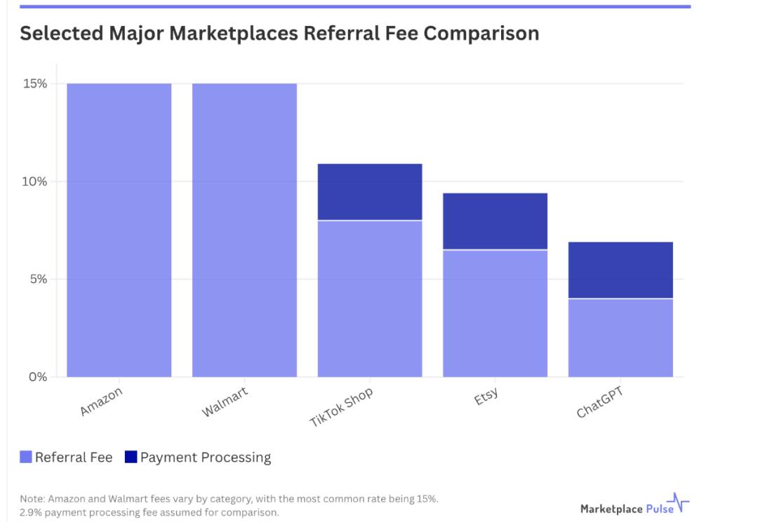 以Shopify为例,卖家除了支付平台常规2.9%的支付处理费基础上,需额外支付ChatGPT的4%服务费,综合费率约7%。这个数字放在当今主流电商平台的费率下,显得相当温和。