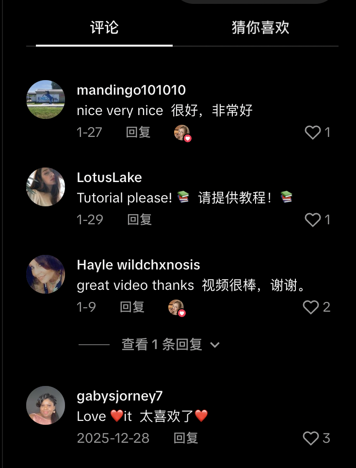 这种产品在短视频里非常好展示,而且极易引发评论区讨论。很多用户在评论区留言“太喜欢了”“我想要一两个”,表达对产品的喜爱,从而带动视频进入更大的流量池。
