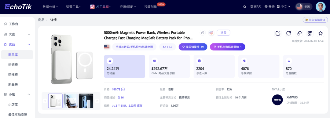 近期,一款无线磁吸式移动电源在TikTok爆卖!