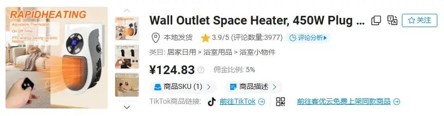 TKFFF 进一步发现,该产品在TikTok美区的运营布局极具策略性。初期它以“浴室取暖”为核心定位,深耕家居用品类目,同款浴室款迷你电暖器销量表现十分惊人。