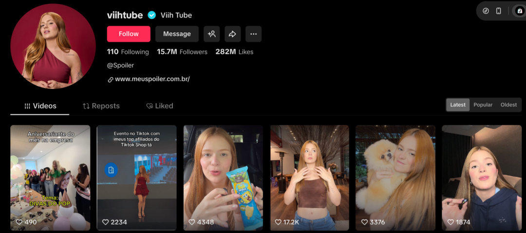 巴西本土达人创作热情高涨、粉丝号召力强劲,巴西知名博主、演员兼作家ViihTube就是典型案例。