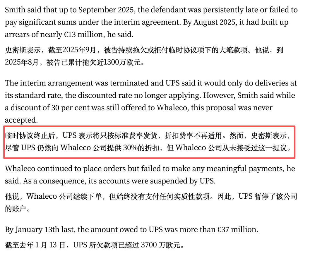 平台欠欧洲UPS物流费的新闻,