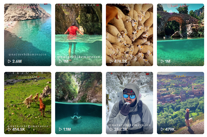 内容层面,该账号紧紧围绕摩洛哥当地的绝美风光与户外生态展开,大量发布沉浸式户外探索、自然风景实拍视频,并在场景中自然融入Naturehike装备的实际使用场景,用当地人喜爱的视觉语言传递产品价值。