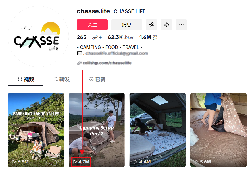 拥有6.23万粉丝的TikTok户外露营达人@chasse.life便是品牌合作的达人之一。