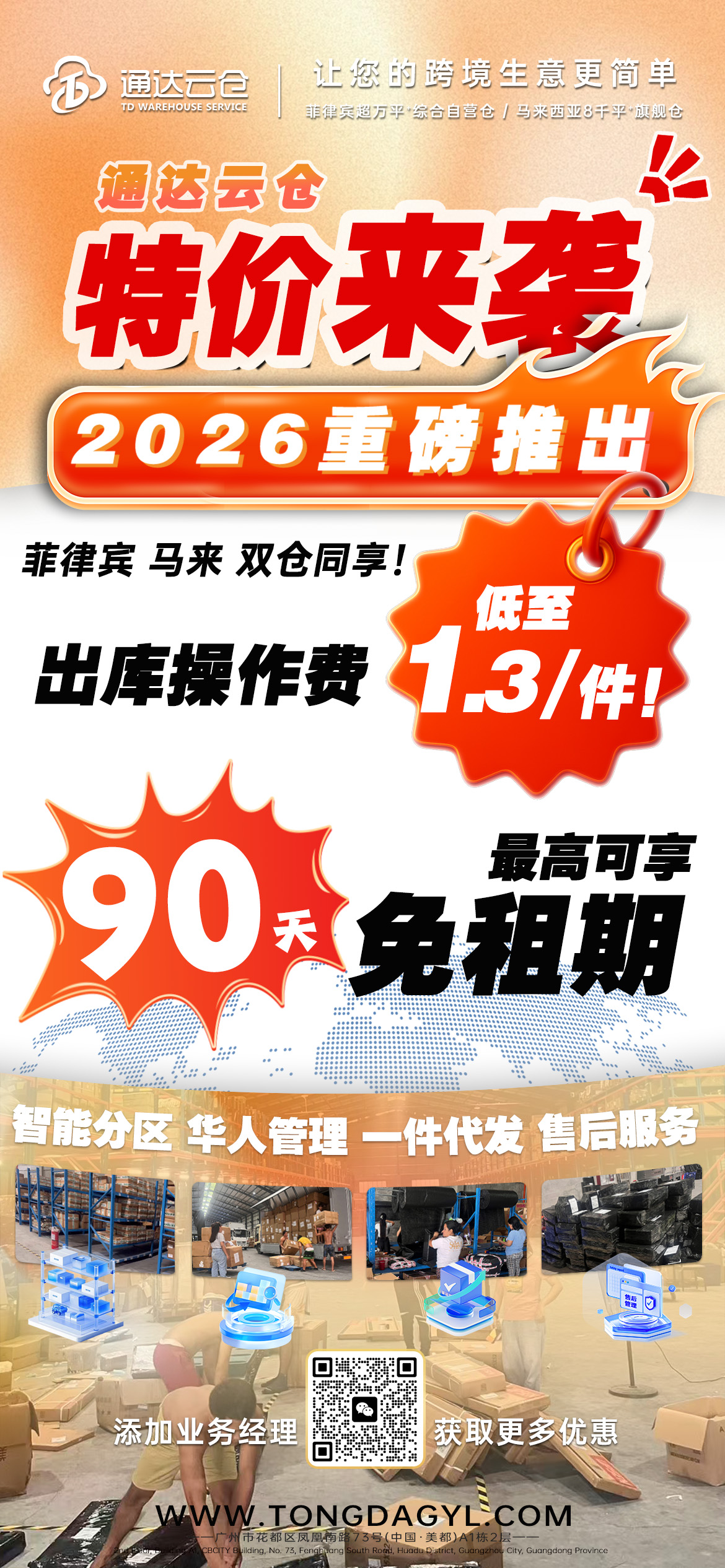 菲律宾马来双仓同享,出库操作费低至1.3/件,最高可享90天免租期