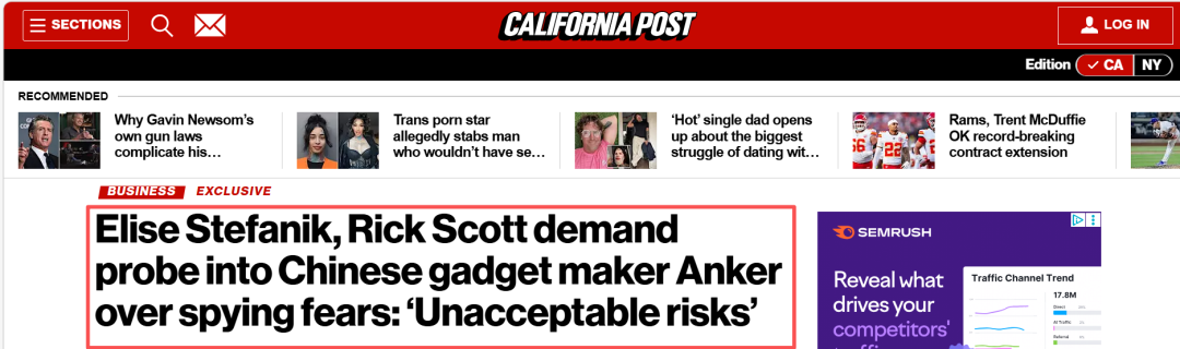 当地时间3月2日,《纽约邮报》消息显示,美国共和党众议员Elise Stefanik和参议员Rick Scott向美国监管机构发出公开信,要求对安克展开调查。信件主要指向安克旗下智能家居品牌Eufy的数据安全问题,并建议美国政府相关部门评估潜在风险。