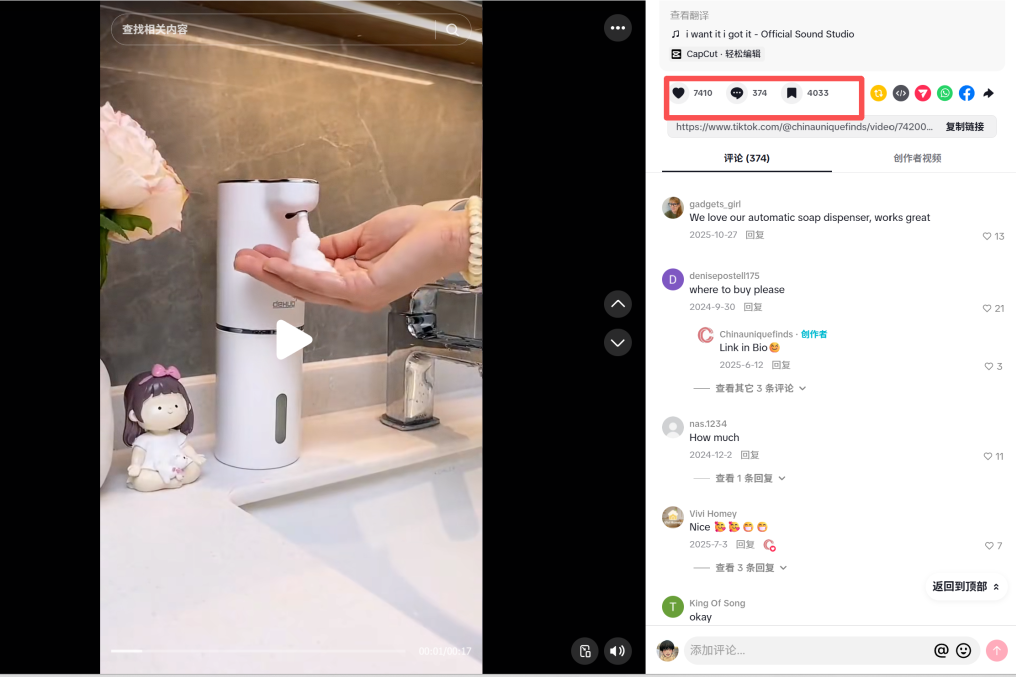 当一个产品既有实用性,又有展示感,它在TikTok上的传播会自然很多。