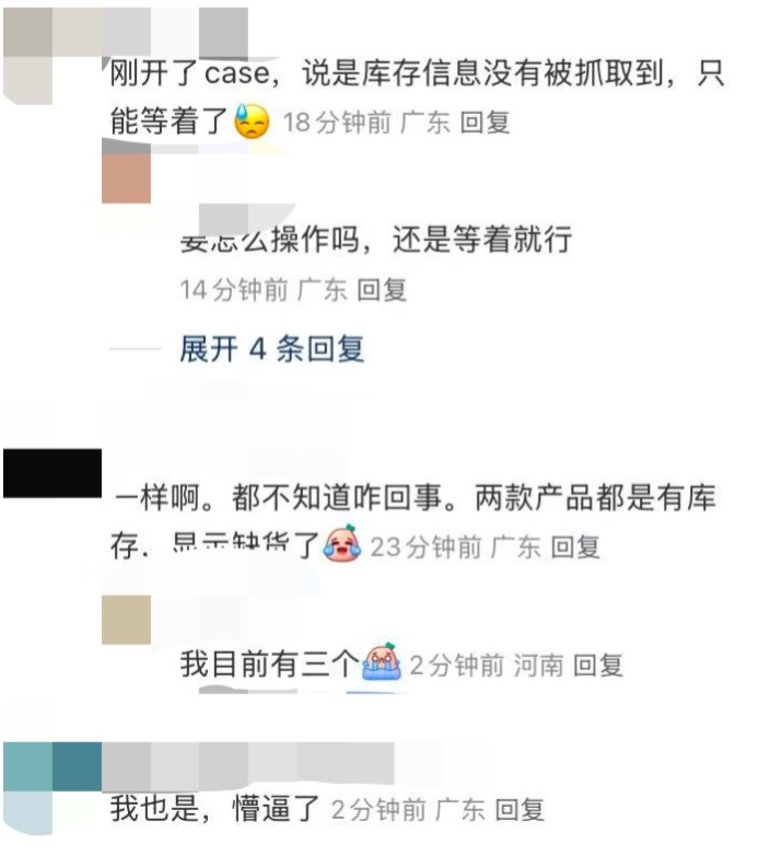 “都不知道咋回事,两款产品都是有库存,显示缺货了。”