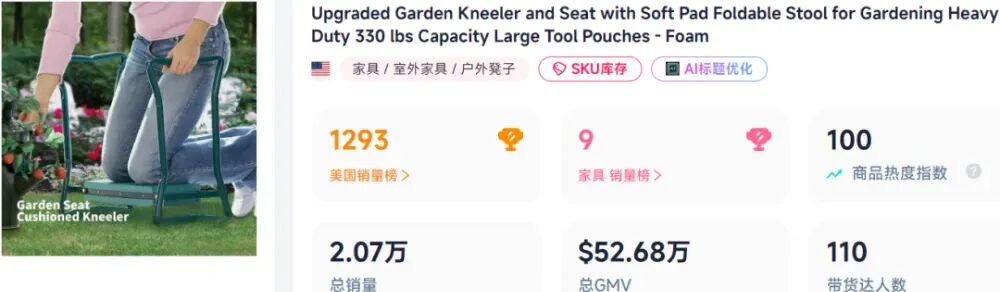 它只是一把沙滩椅,却在短短7天里,在TikTok美区卖出近万件,冲到类目第一,总销售额超33.40万美元,(约合人民币230.17万元),还直接把库存卖到见底。