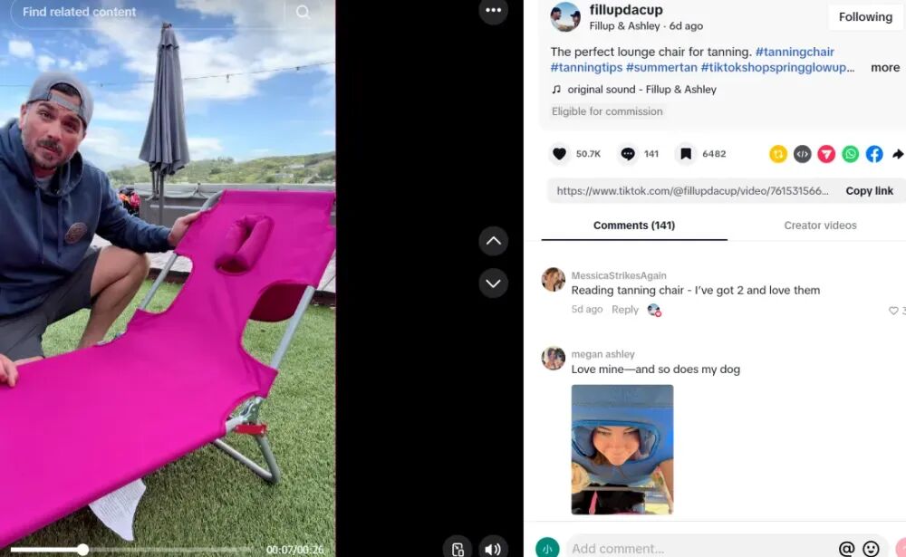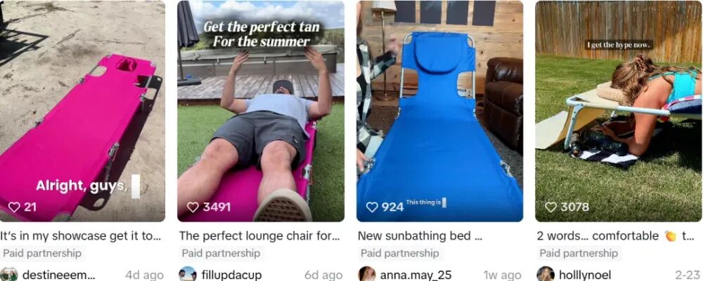 在#beachchair、#tanningchair标签下,大量UGC内容开始出现;用户自发晒单、测评、分享体验;新的流量不断涌入,形成循环。