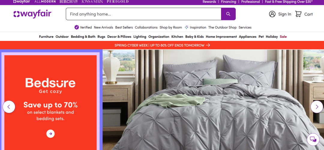 截至2025年,Wayfair的活跃用户数超过2130万,平台年收入约125亿美元。其生态系统极其庞大,连接了全球超过20000家供应商(卖家),提供涵盖家具、装饰及家电在内的3000万至4000万种商品。