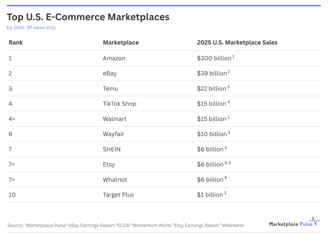 [1]Top 10 E-Commerce Marketplaces in 2026 . Marketplace Pulse