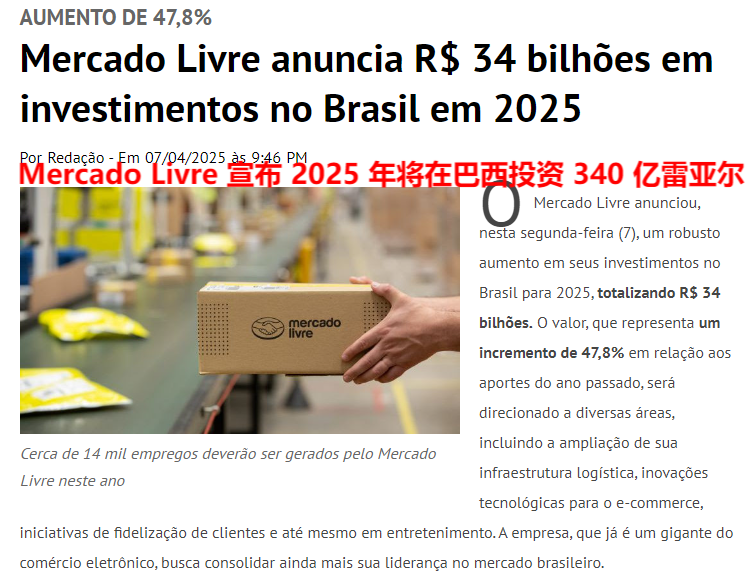 这笔相比去年(340亿雷亚尔)激增50%的投资,不仅创下了美客多在巴西市场的历史纪录,更向所有竞争对手传递了一个清晰得不能再清晰的信号:在这片拉美最大的电商热土上,美客多正在从“参与者”转变为“定义者”。