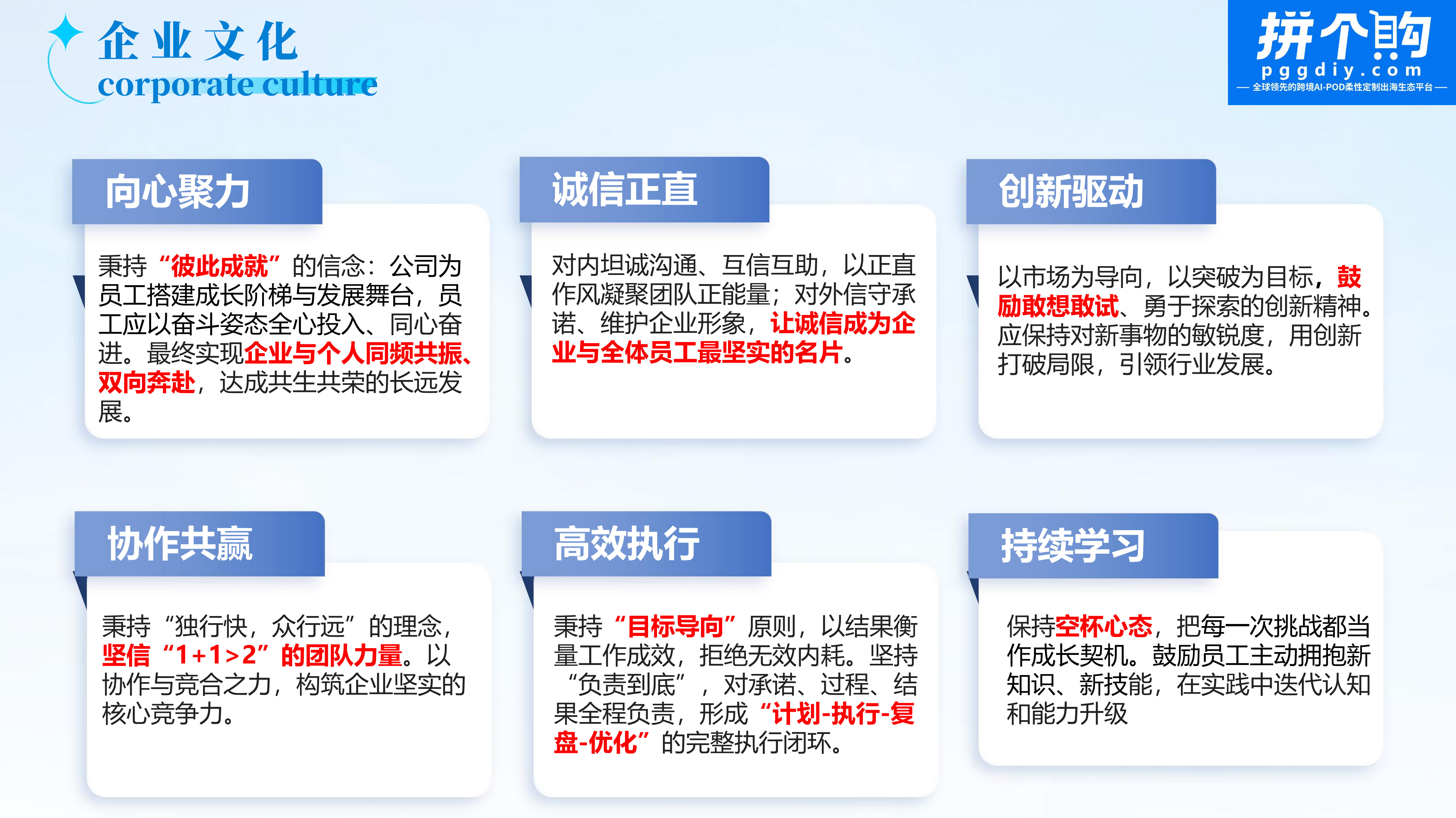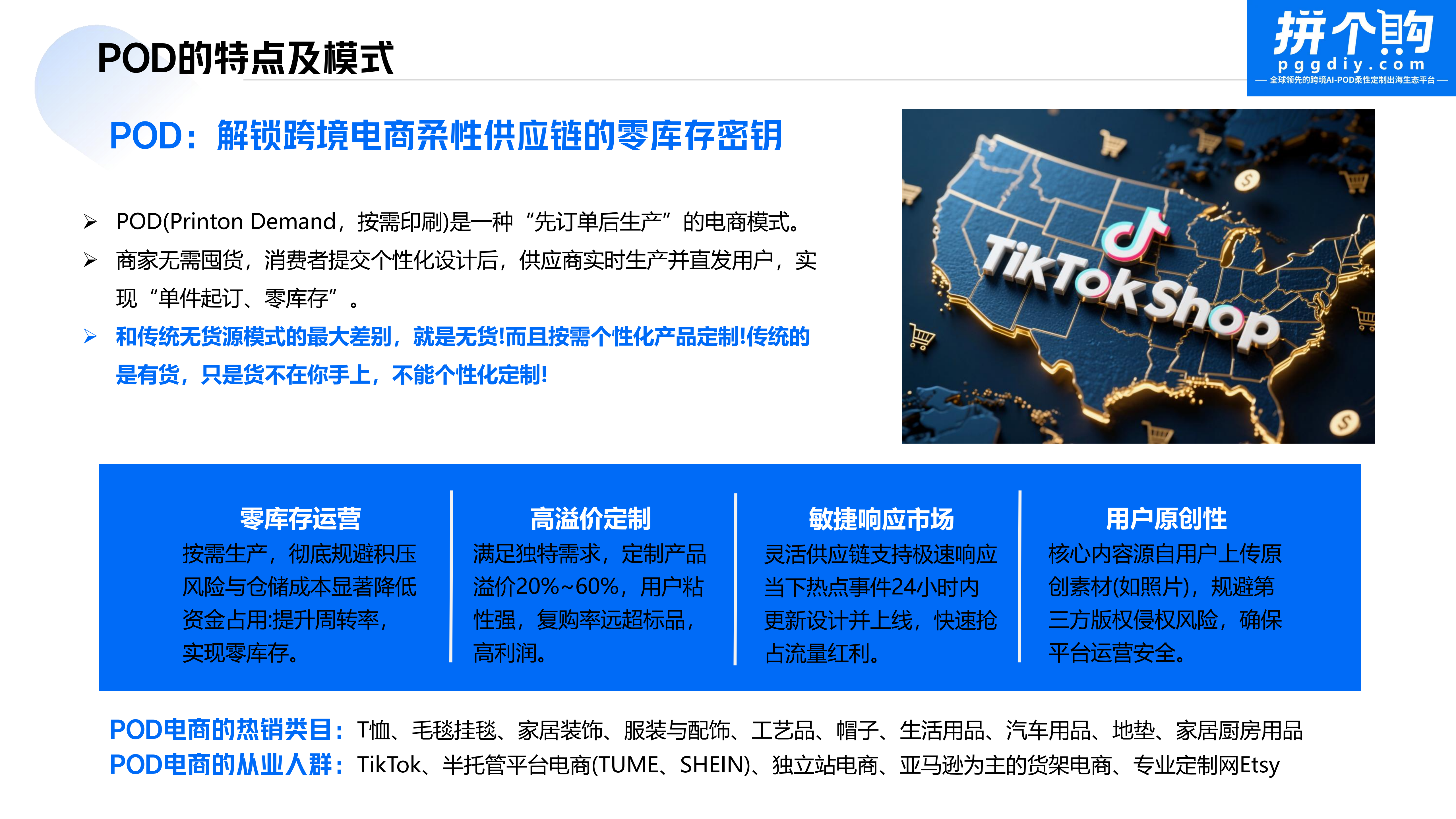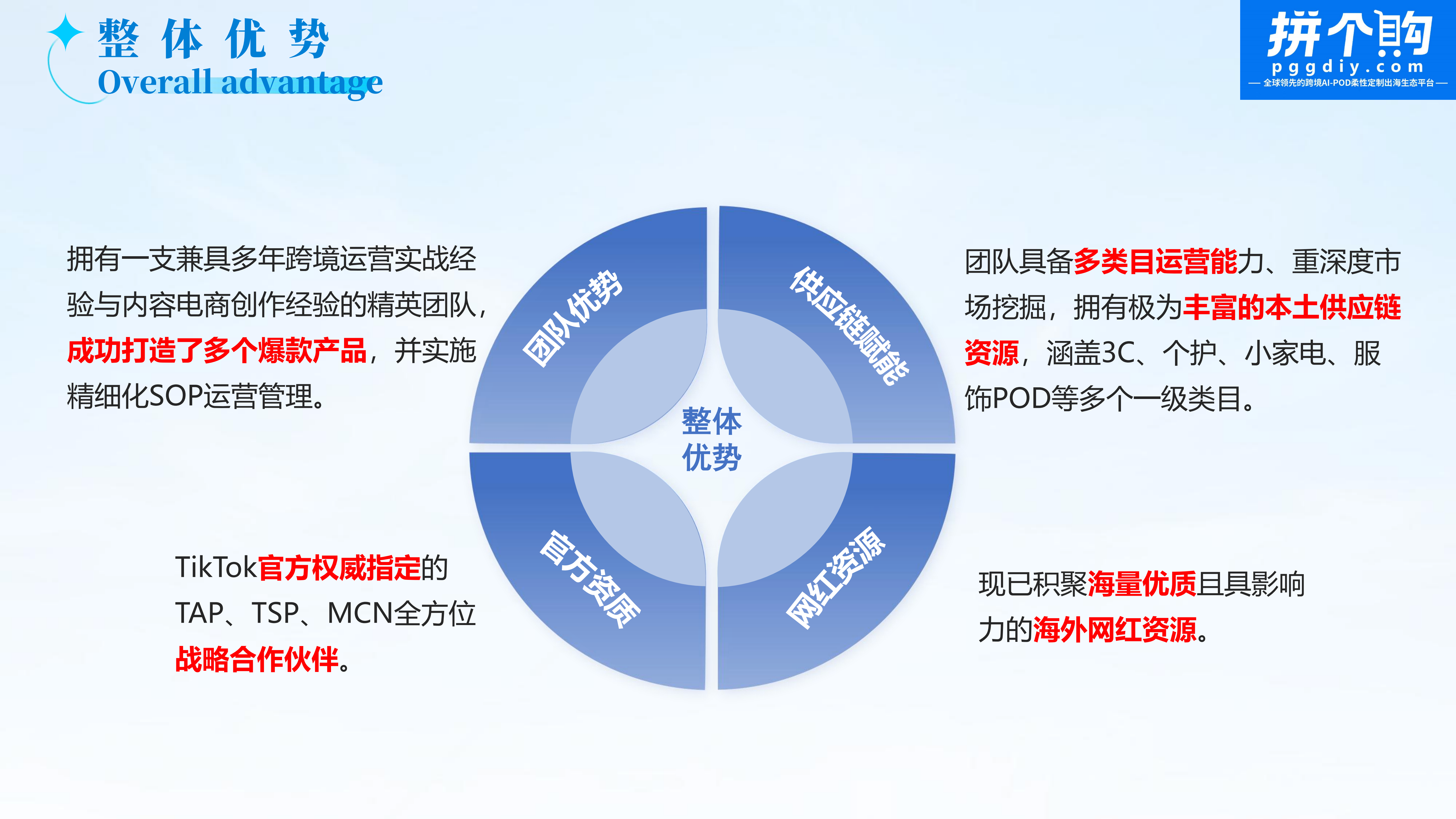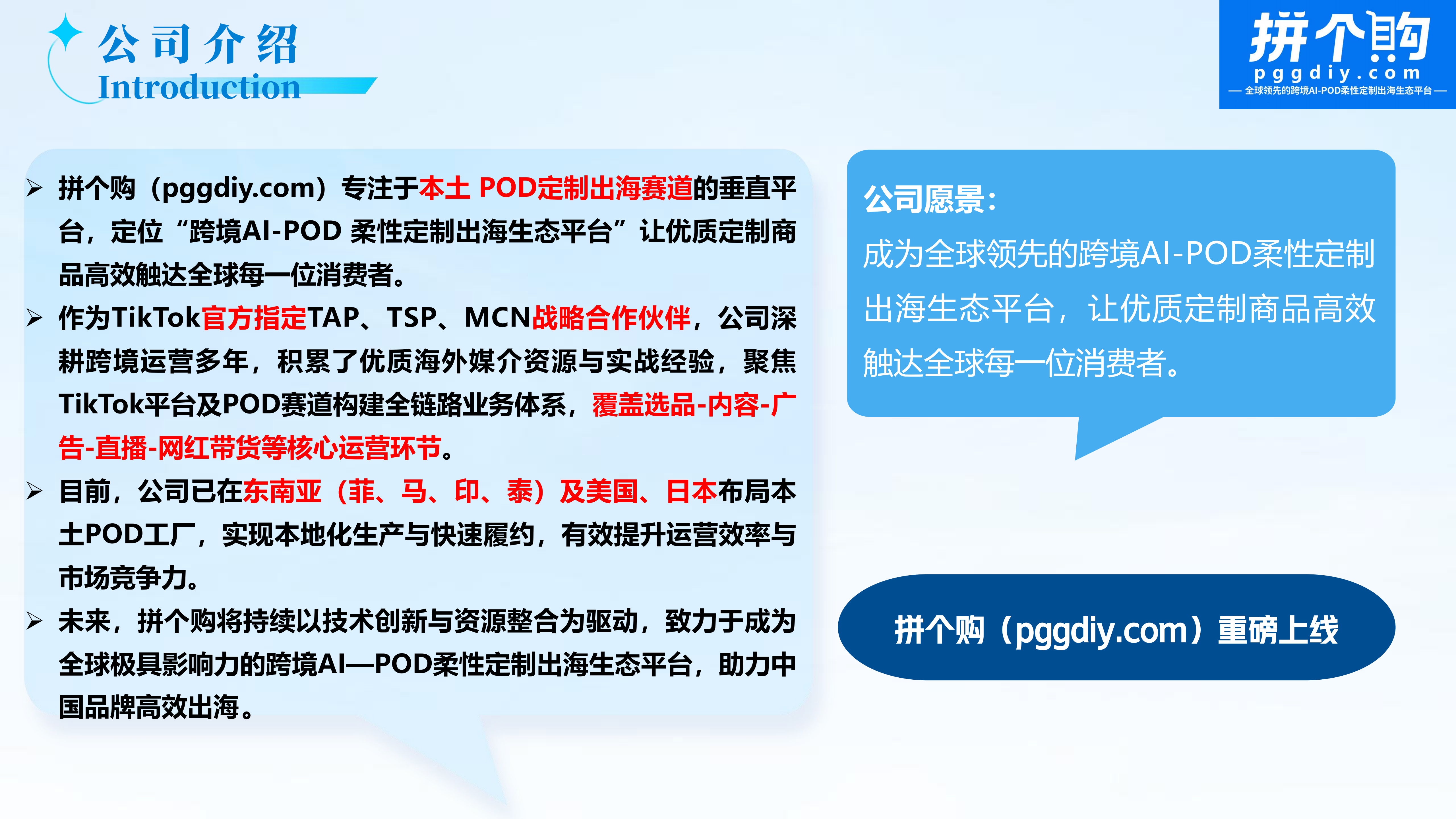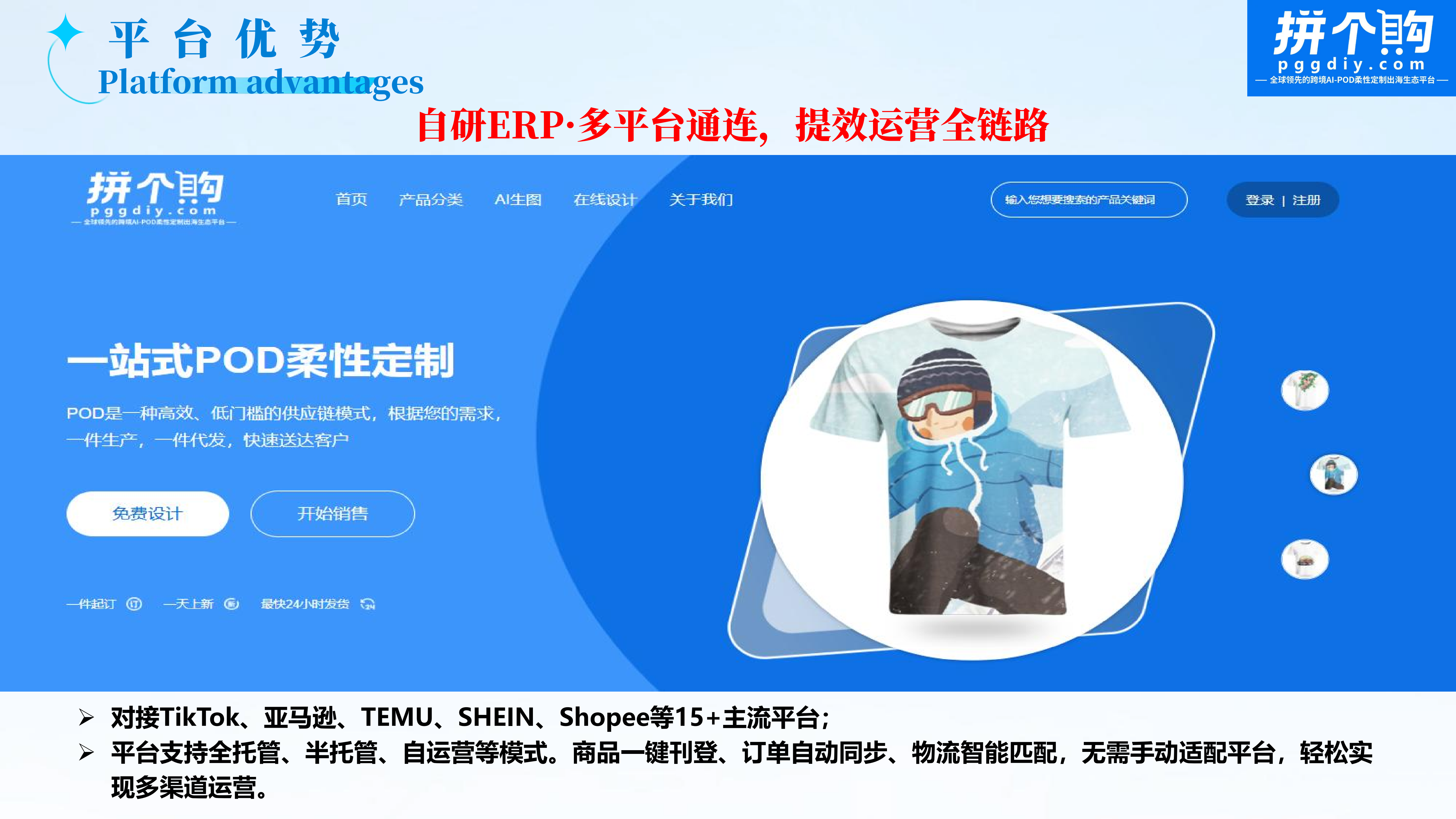 拼个购专注于本土 POD定制出海赛道的垂直平台,定位“跨境AI-POD 柔性定制出海生态平台”让优质定制商品高效触达全球每一位消费者。