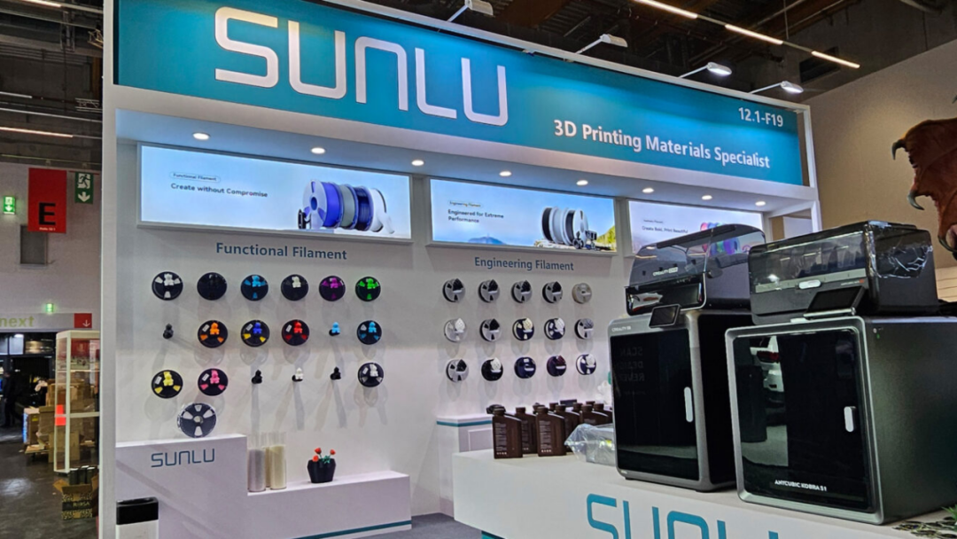 2024年11月,就在德国分公司成立的同时,SUNLU高调亮相全球最大的3D打印展会——德国Formnext 2025 ,展示了其最新的工程材料(如碳纤维增强尼龙、PEEK等)以及针对拓竹(Bambu Lab)AMS系统的加热器。