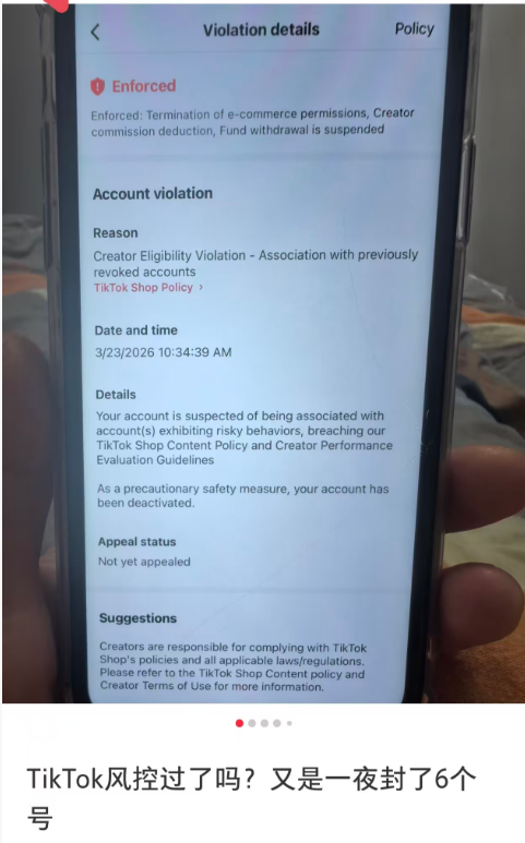 从2026年3月开始,TikTok在全球多个站点启动了一轮力度空前的风控升级。大量卖家反馈遭遇账号被封、限流、销售功能冻结等情况。