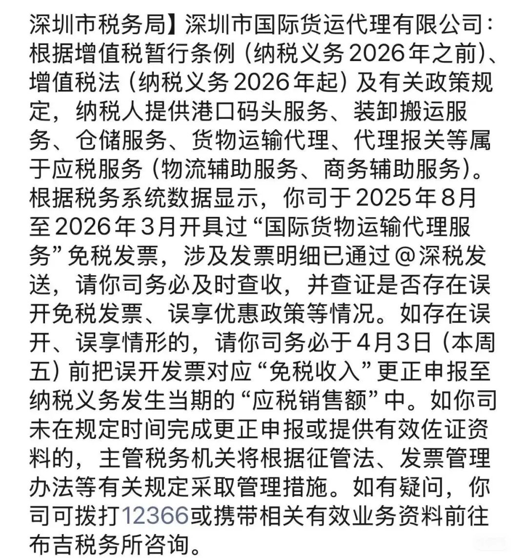 据初海视野了解,近日多家货代收到来自深圳税务局的通知。