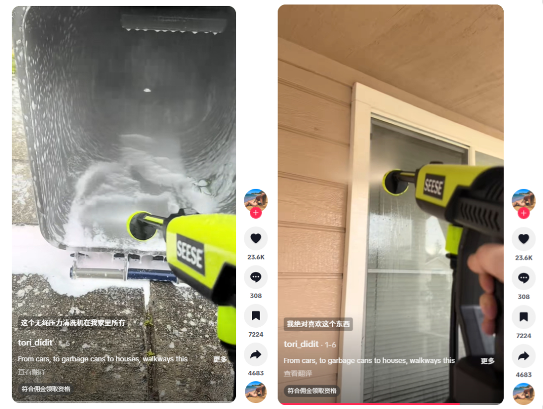 她在视频里亲身演示SEESE无线清洗机,轻松搞定汽车、垃圾桶、庭院步道清洁,把产品轻便易操作的特点展现得一目了然。