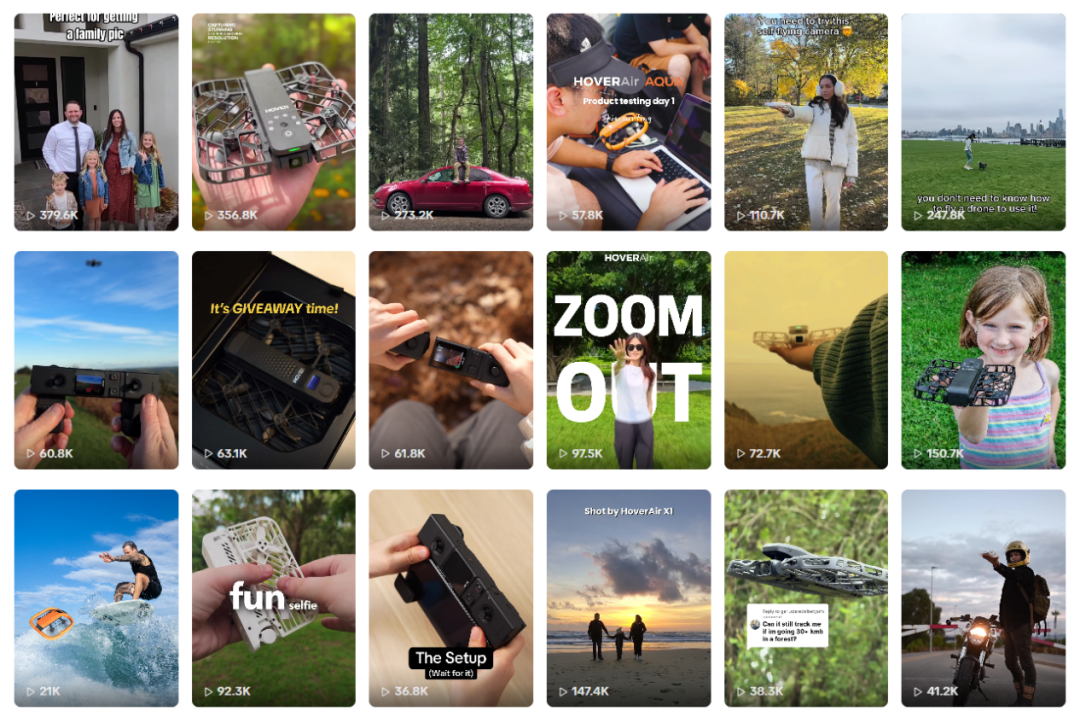 为进一步打响品牌知名度,让更多精准需求用户认识并了解产品。HoverAir品牌选择将TikTok等主流社交平台作为核心营销阵地,依靠社媒渠道上的疯狂曝光,一步步把品牌声量和受众圈越做越大。