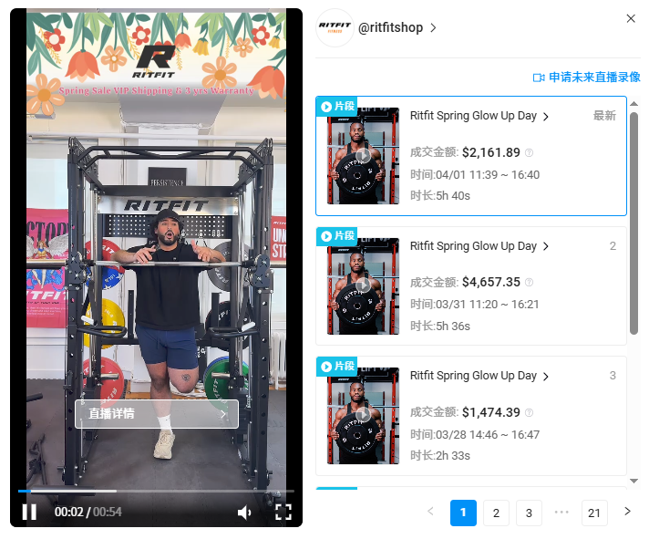 从具体直播运营来看,RitFit偏好推出主题化的系列直播,比如2026年3—4月推出的「Ritfit Spring Glow Up Day」春季主题直播,单场时长最长达到5小时,通过长时段直播覆盖不同时区的用户。