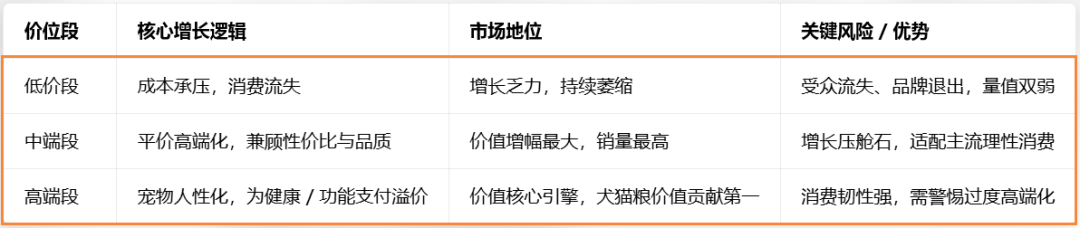 成本压力下消费者流失、品牌退出、宠物结构变化,低价赛道持续萎缩。