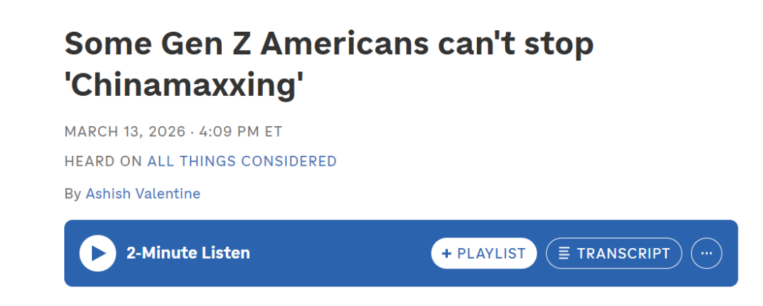 在一篇来自NPR的报道中,一位美国年轻人坦言:“在美国,我们总被推着往前跑,而中国文化教我停下来感受当下。”这种反差,让Chinamaxxing不再只是潮流,更像是在一场中国文化的洗礼下获得”新生“。
