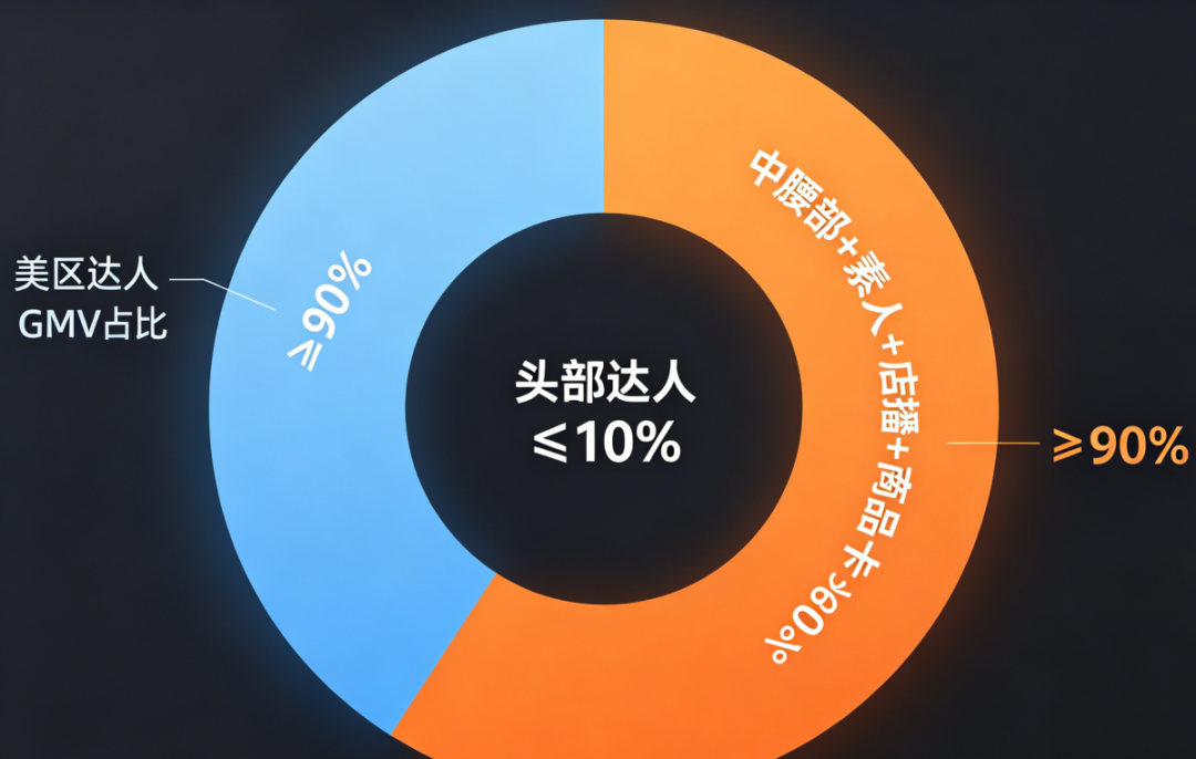 Top10–Top20 头部达人 GMV 占全平台:≤10%