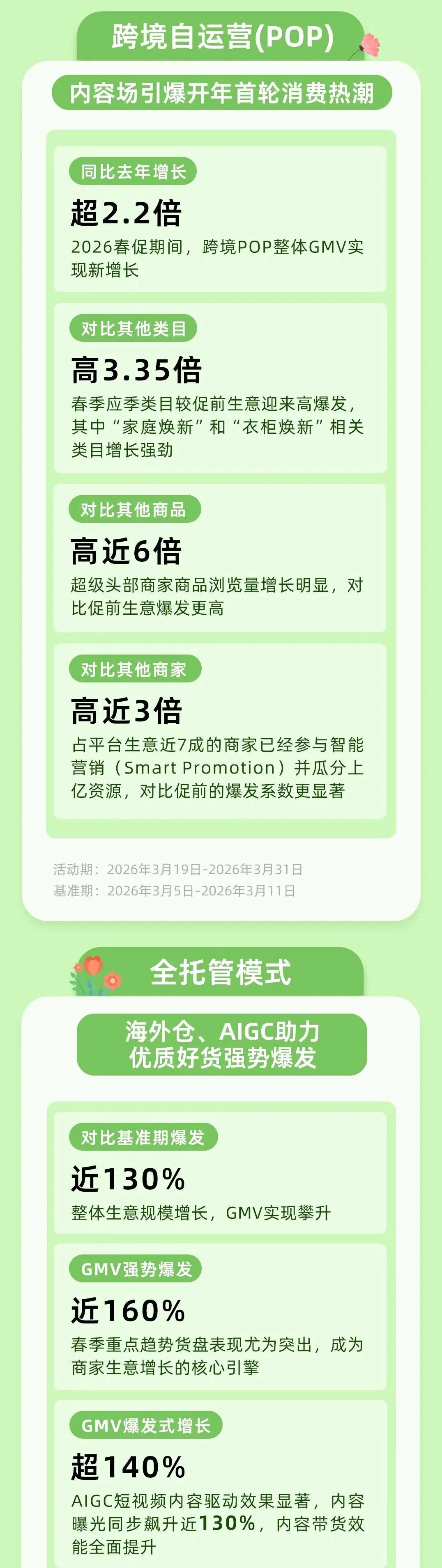 跨境自运营(POP)整体GMV同比增长超过 2.2倍 ,而一个更值得留意的数字是: 全托管模式下,AIGC视频带来的GMV爆发超过140% 。