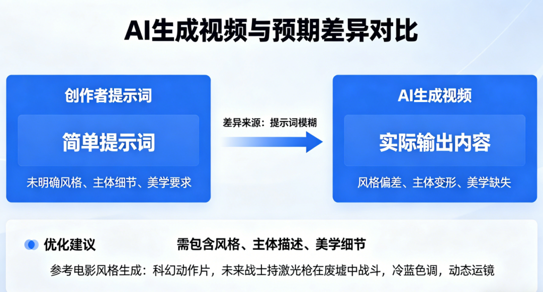 如果说工具的局限性是“先天不足”,那使用者的认知和使用能力,就是“后天拖后腿”——这也是多数人做不好AI视频的主要原因,却也是最容易快速改善的部分。