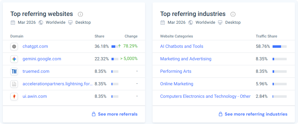 虽然引荐流量整体仅占官网总流量的2.46%,但AI工具的导流效应已经显现,并且增速惊人。对于品牌而言,这意味着在传统的搜索引擎优化之外,面向AI对话模型的“内容可发现性”正在成为一个新的变量。