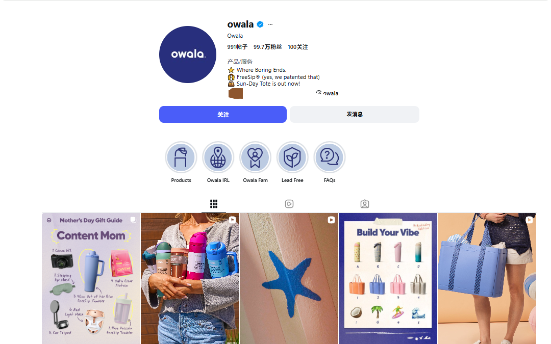 Owala最值得关注的地方,不在于它进行了什么惊天动地的大规模投放,而在于它搭建了一套以用户自发内容为核心的多平台运营体系。