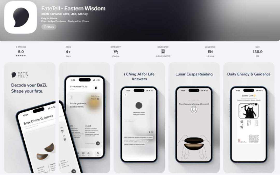 FateTell从一开始避开国内竞争激烈的市场,直接面向海外。目标用户主要为海外华人及对东方文化感兴趣的欧美年轻人,以25-35岁高学历群体为主,女性用户占比近60%。