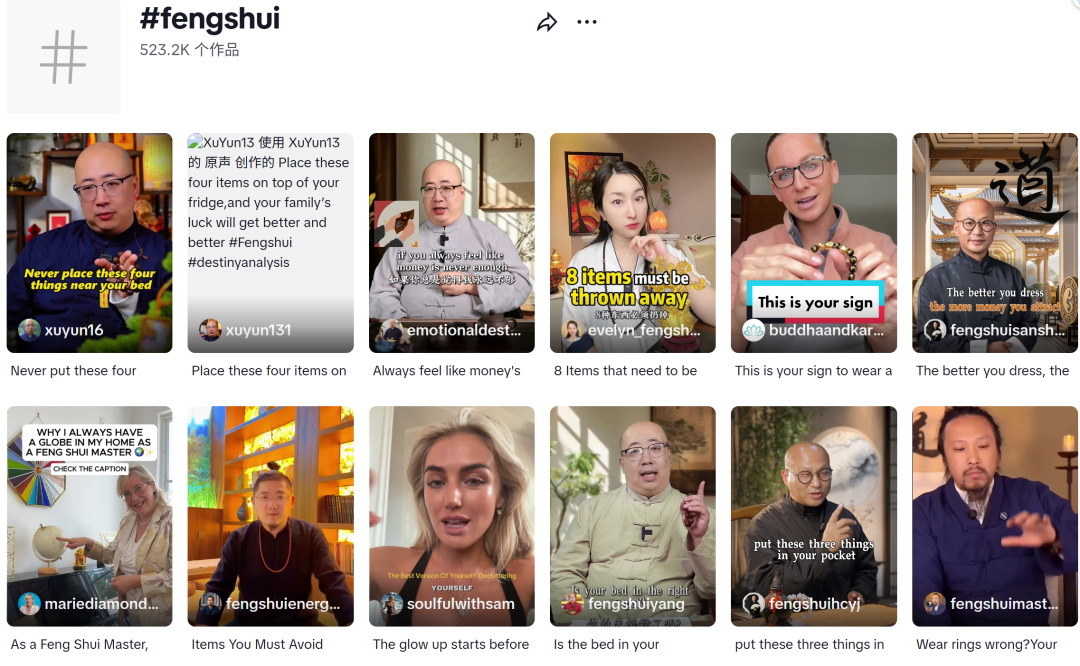 全球情绪经济快速增长。预测显示,2024年全球灵性产品与服务市场规模达1801.8亿美元,2032年将超2490亿美元。TikTok上#fengshui话题视频量突破52万条,中国八字命理文化借助AI技术,以“赛博玄学”新形态风靡海外。